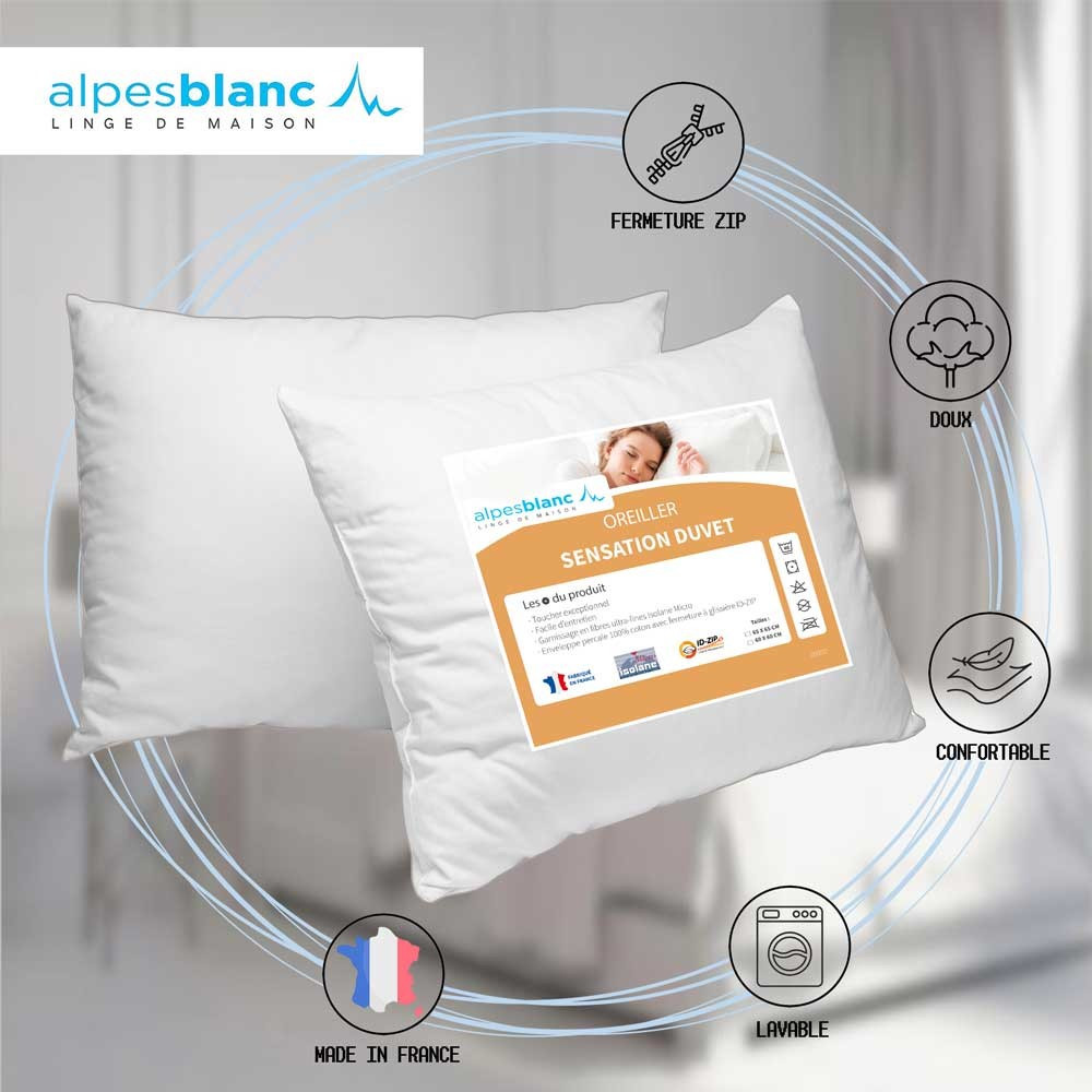 L'oreiller sensation duvet vous permet de passer des nuits douce et agréables grâce à son confort moelleux.