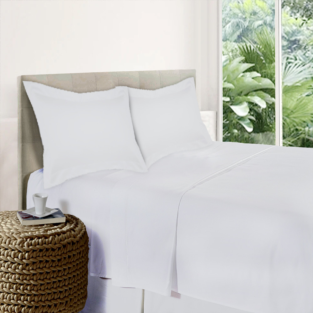 Parure de Draps 100% Percale de coton 80 fils/cm² - Blanc - 160 (4p)