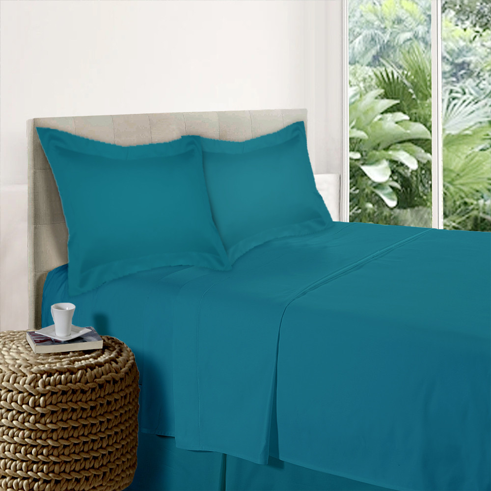 Parure de Draps 100% Percale de coton 80 fils/cm² - Bleu Canard - 160 (4p)