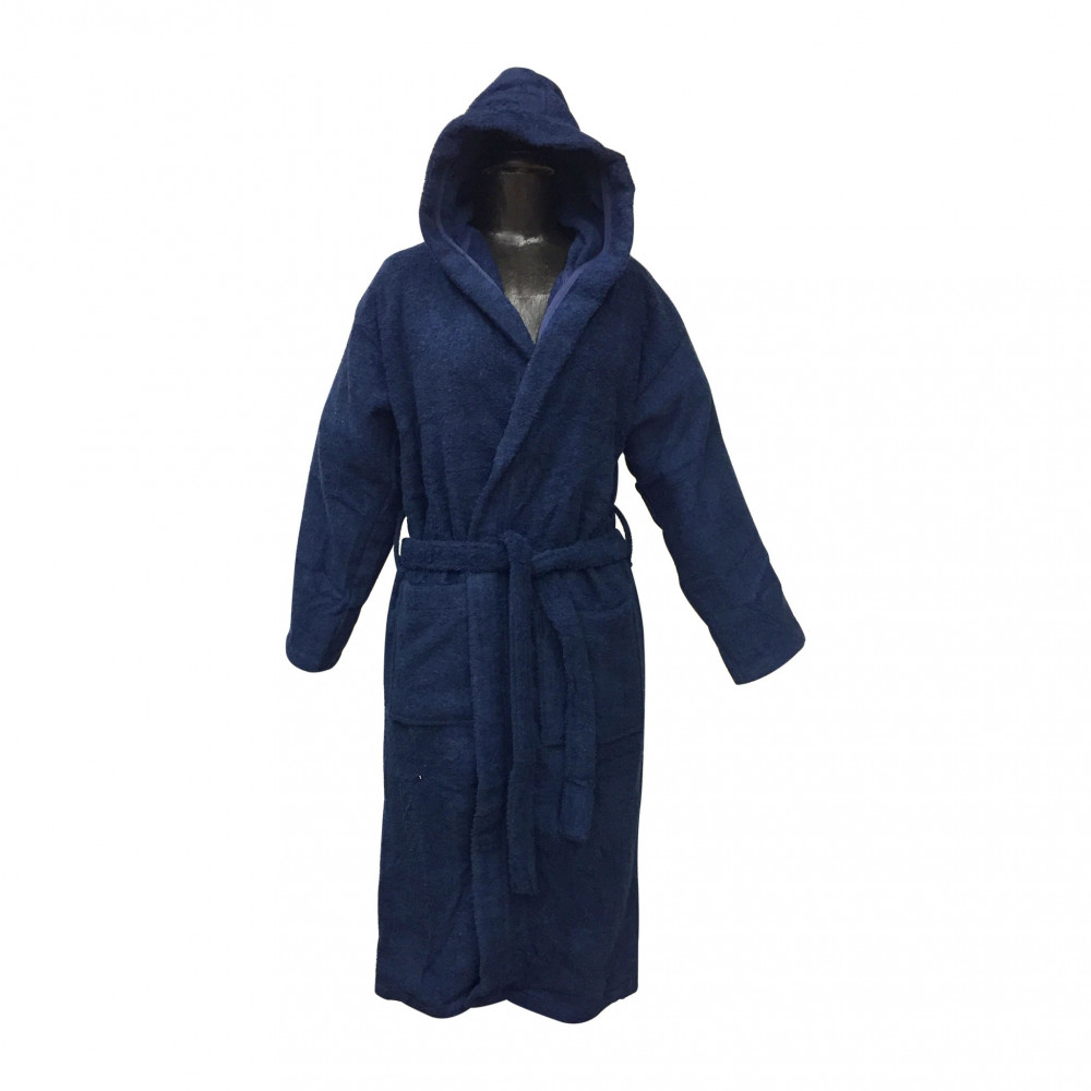 Peignoir de bain mixte à capuche 100% coton éponge bouclette 450g/m² - Absorbant, doux et confortable – Ceinture et poches - XXL - Bleu Marine/Navy Blue