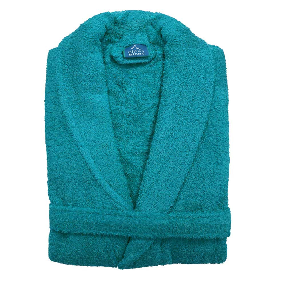 Peignoir de bain à col Châle – Mixte – 100% coton 450 g/m² – Doux et absorbant – Style classique et intemporel – Séchage rapide - M - Bleu Canard