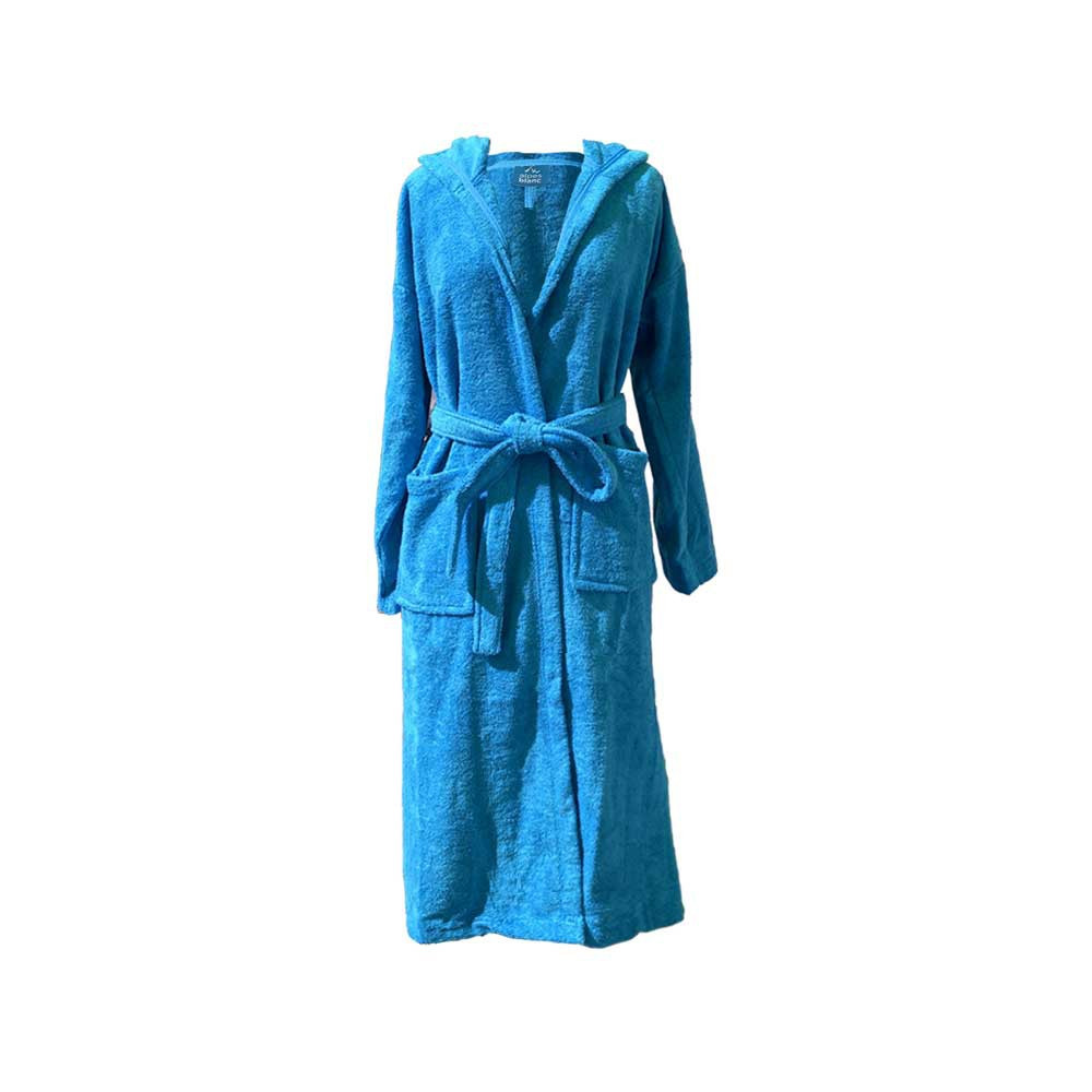 Peignoir de bain avec capuche 450 g/m² – 70% Coton peigné, 30% Bambou – Ultra doux, confortable et absorbant – hypoallergénique - Bleu Canard - S