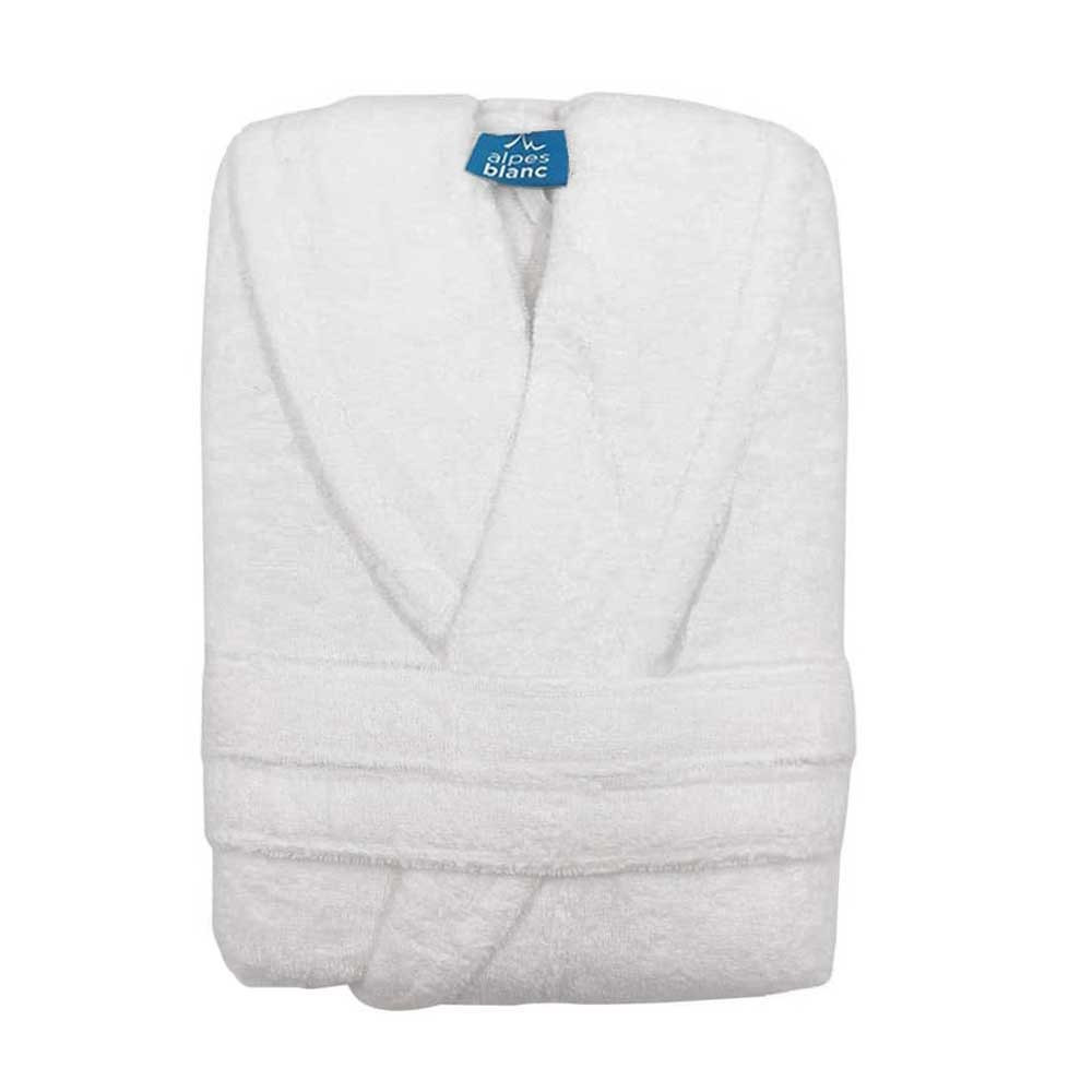 Peignoir de bain à col châle 70% coton et 30% bambou 450 g/m² - Doux et ultra-absorbant – hypoallergénique – Coupe mixte - Blanc - S