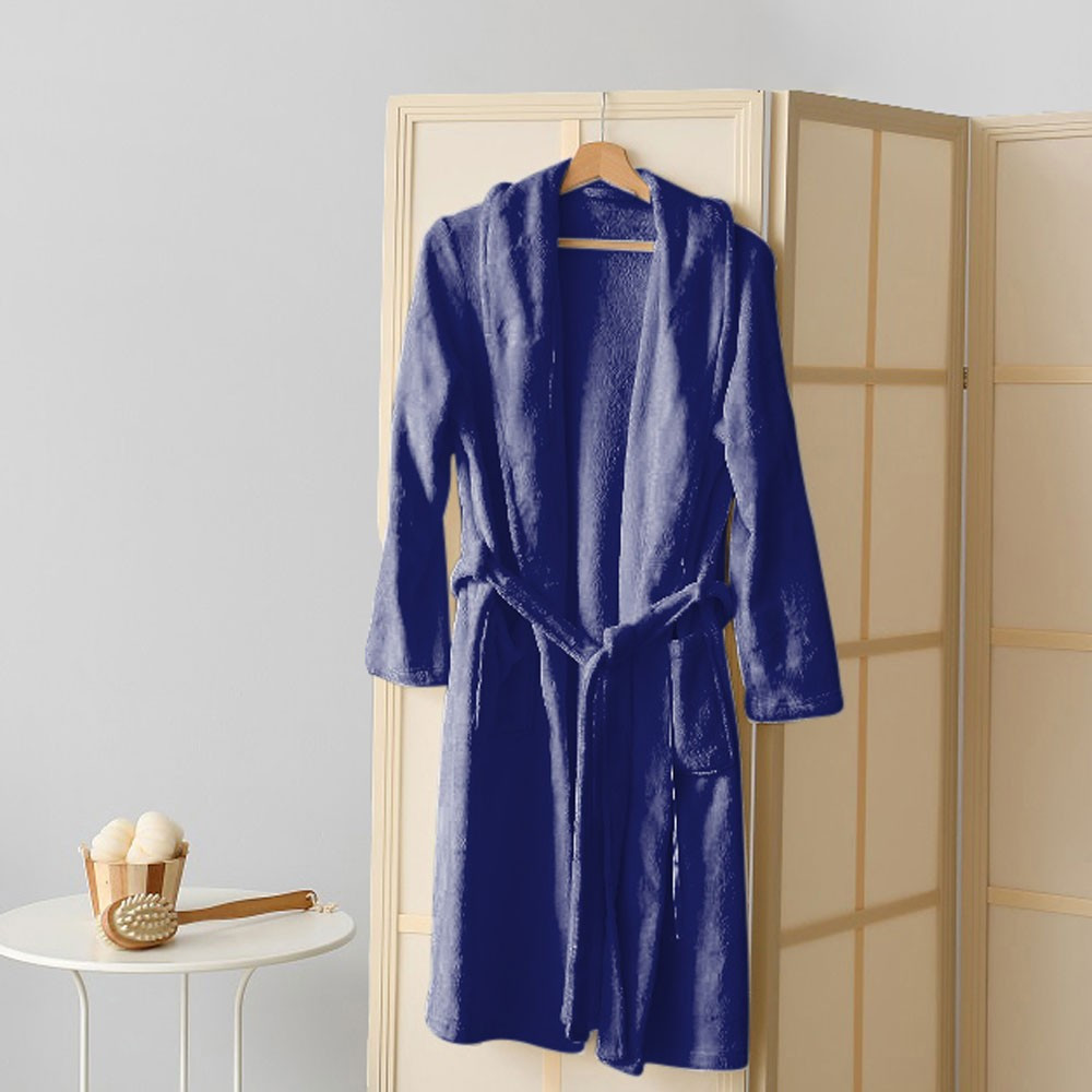 Peignoir de bain à col châle 70% coton et 30% bambou 450 g/m² - Doux et ultra-absorbant – hypoallergénique – Coupe mixte - Bleu Marine - L