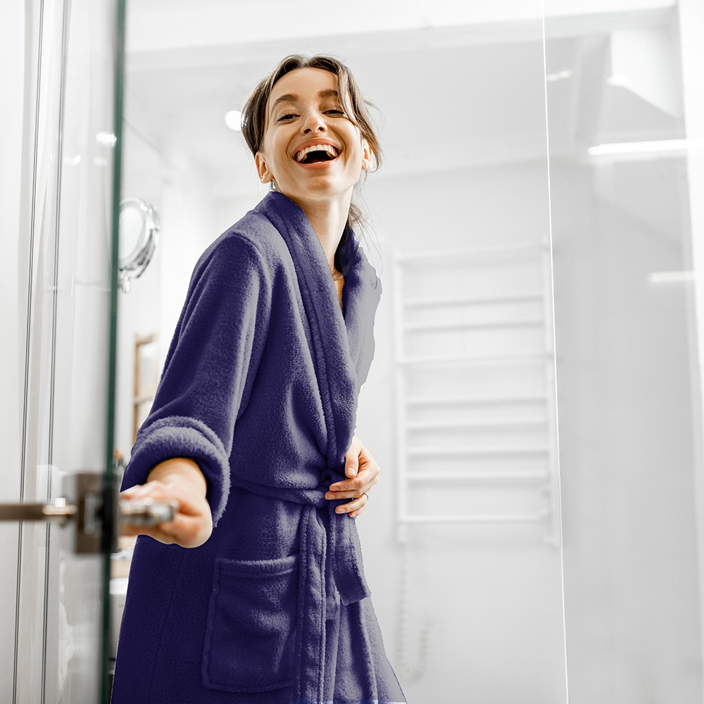 Grâce au mariage du coton peigné à fibres longues et des fibres de bambou, les peignoirs de la marque Alpes Blanc vous garantissent douceur et confort à la sortie de la douche.
