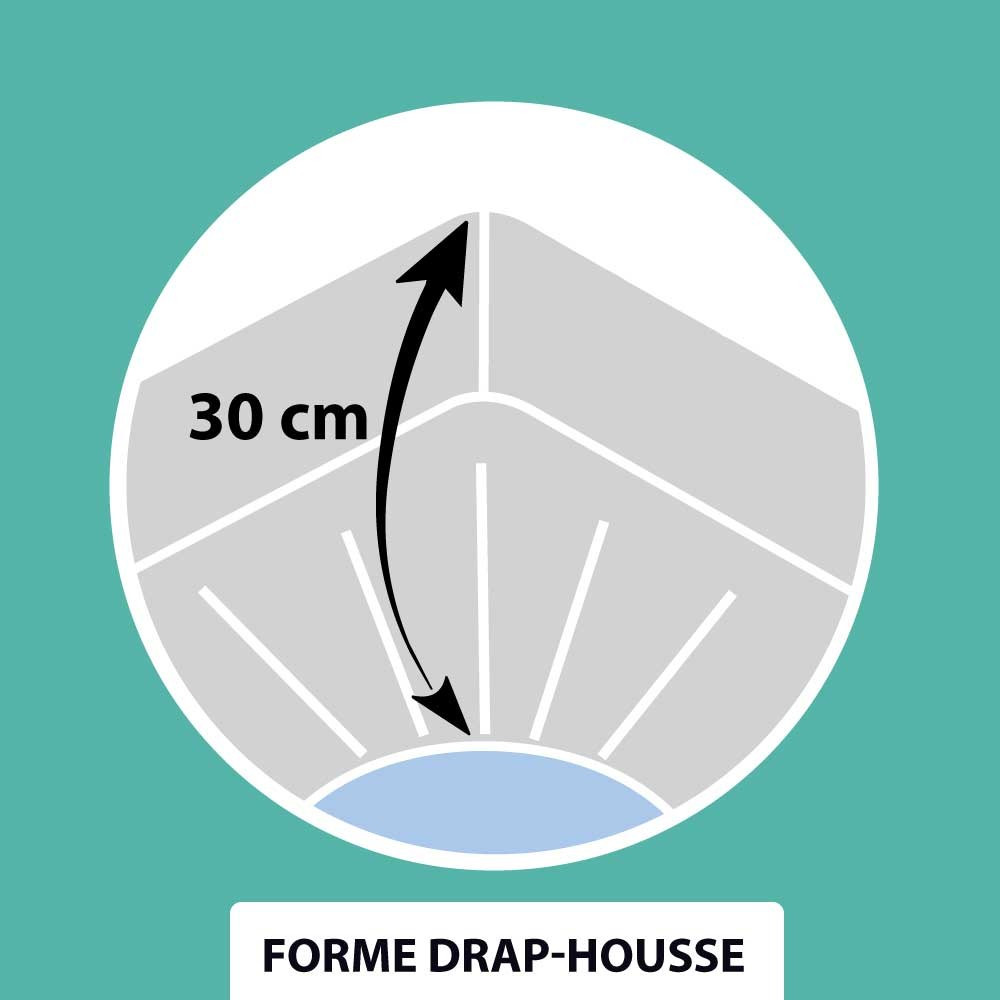 FORME DRAP-HOUSSE AVEC GRANDS BONNETS : ses élastiques aux coins et ses larges bonnets permettent un maintien parfait sur tous les matelas, garantissant une protection stable même après plusieurs nuits.