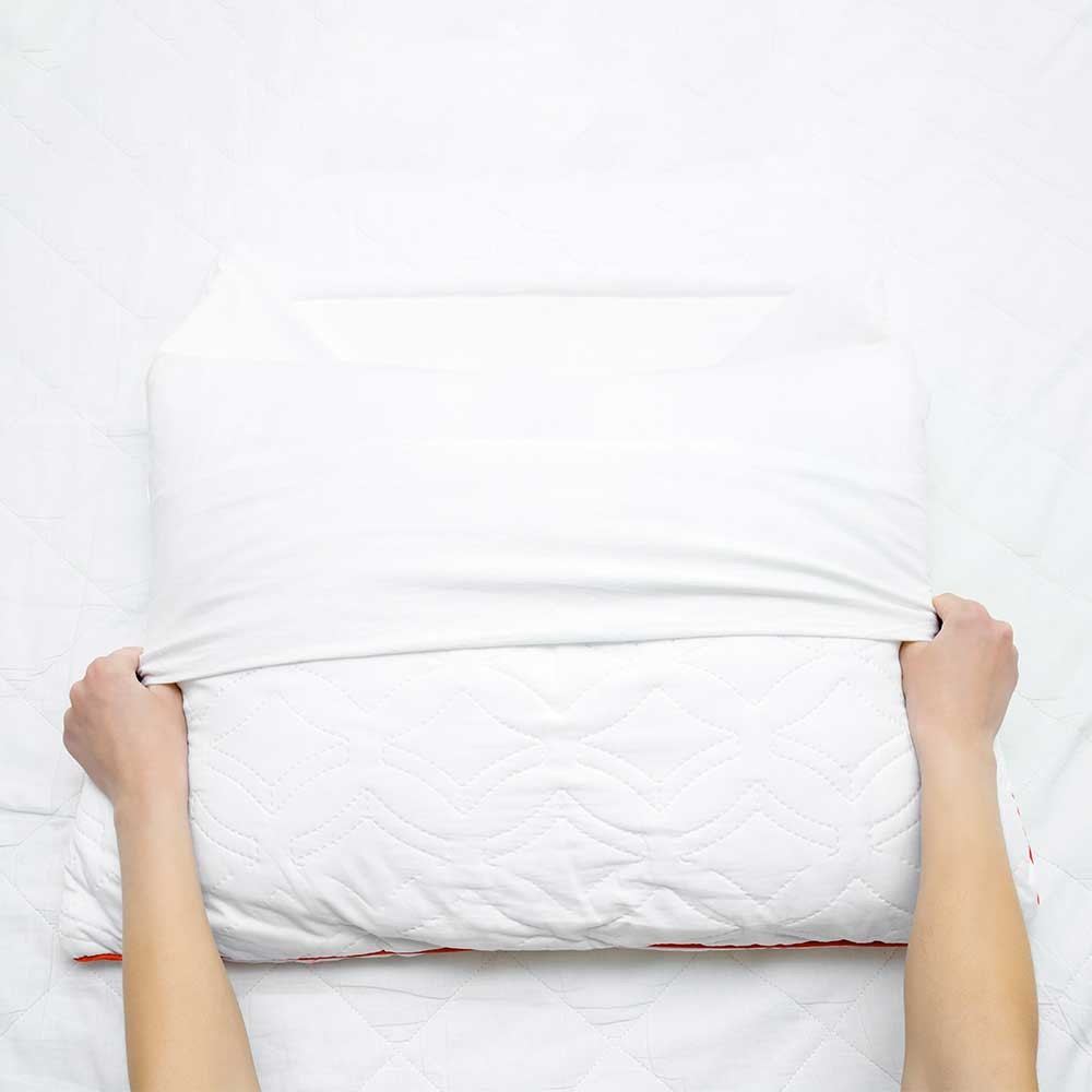 Visuel ambiance, mise en place d'une sous taies sur l'oreiller