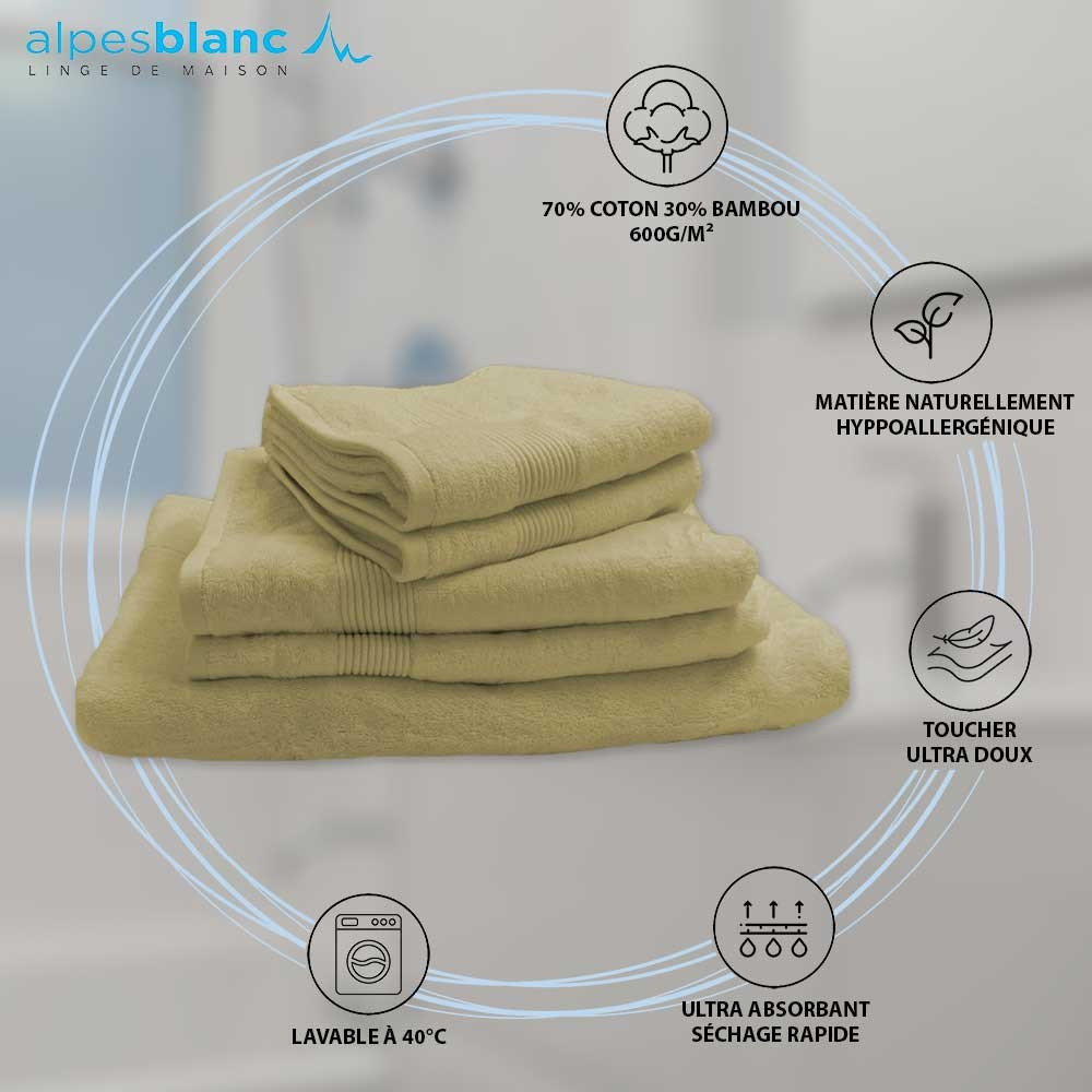 Les serviettes éponge 600gr/m² sont en coton | bambou de très belle qualité et offrent une sensation de douceur et un moelleux incomparable.