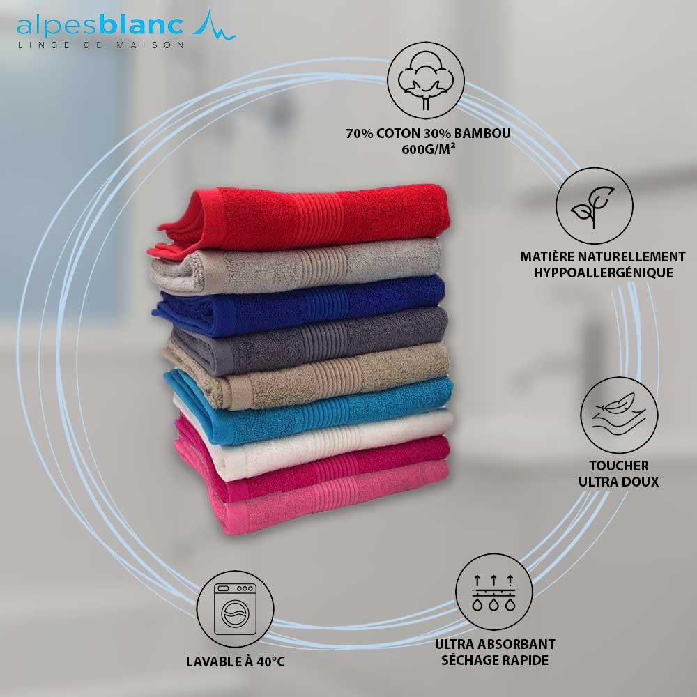 Découvrez la Nouvelle Collection de serviette de bain Alpes Blanc ! Toutes une série de serviettes et de draps de bain en coton et bambou 600 grammes dans des coloris chics et tendances et toujours d'une qualité irréprochable.