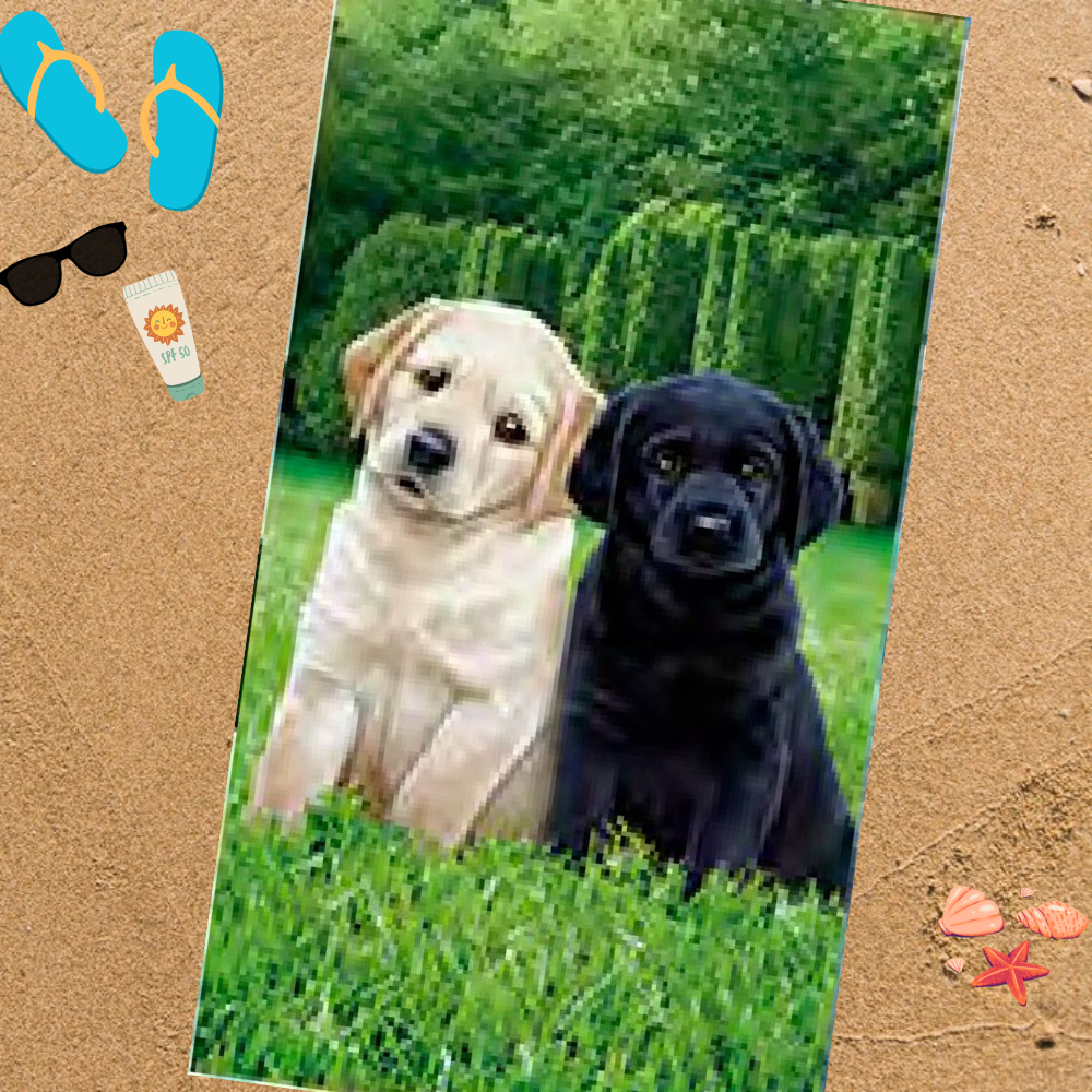 Offrez à vos enfants une touche de fantaisie pour ses sorties à la plage avec notre serviette en microfibre, de dimension 70x140 cm. Avec ses deux adorables chiots, l'un noir et l'autre blanc, cette serviette présente de nombreux atouts : séchage rapide, légère et compacte, elle prendra peu de place dans le sac de votre enfant.