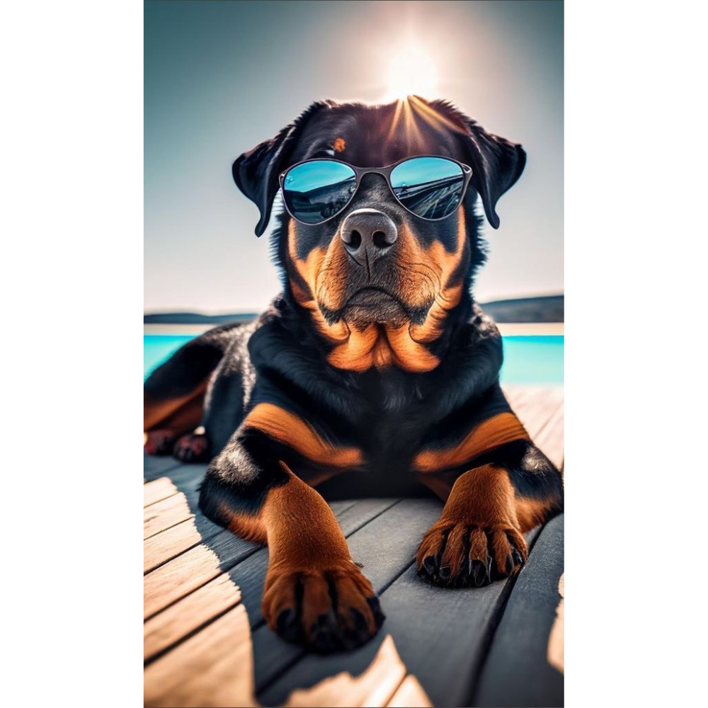 MOTIF : Rottweiler stylé avec lunettes de soleil pour un look fun et décalé pour se faire remarquer.