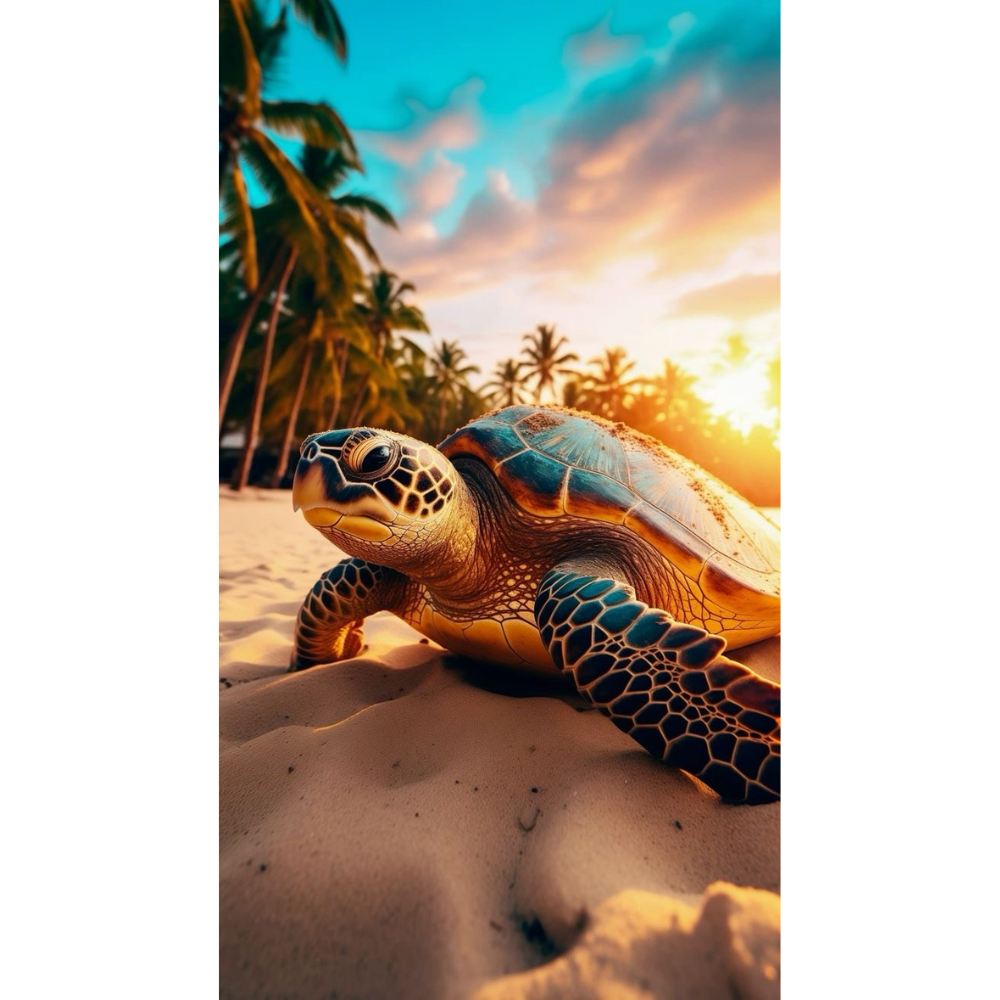 - DESIGN VACANCES : motif tortue sur le sable avec coucher du soleil en fond pour une ambiance estivale partout où vous allez.