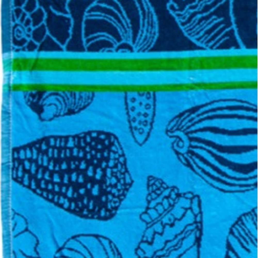 Serviette de plage coquillages bleue & verte 90x170 cm 100% coton