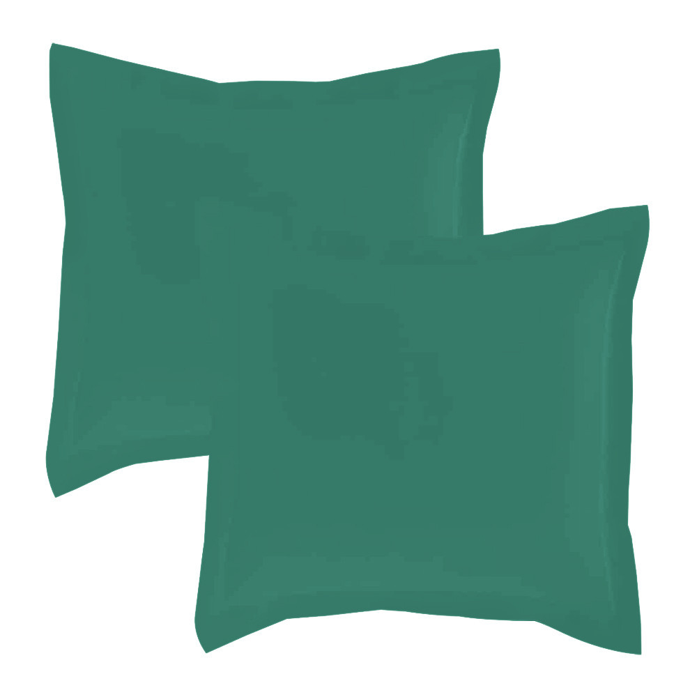 Lot de 2 taies d’oreiller percale 80 fils à volant plat - 100 % coton fibres longues, douceur premium, grand teint, Oeko-Tex - 65x65 cm - celadon