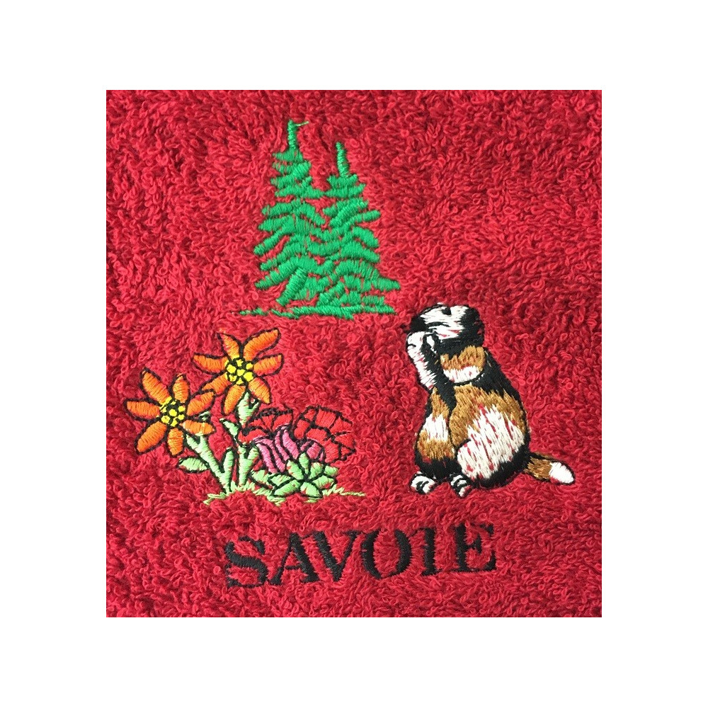 Essuie main en éponge brodée avec de véritable motifs montagnards brodés