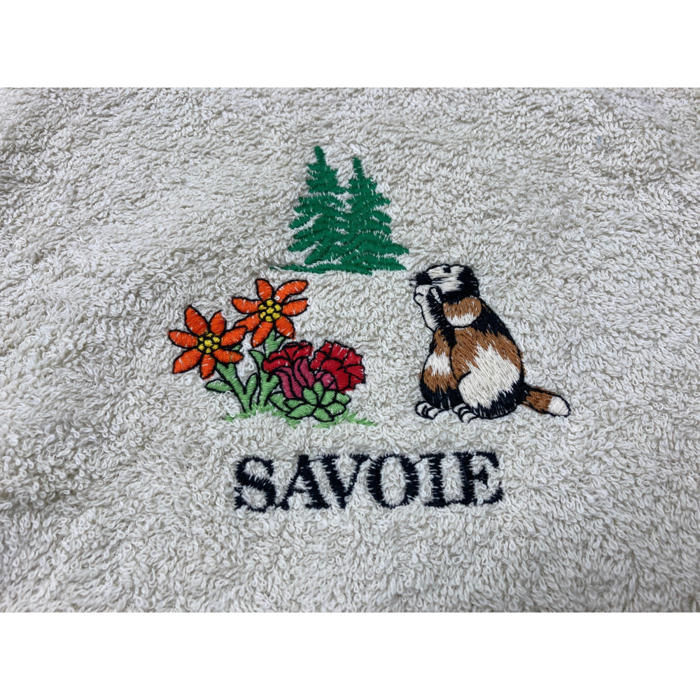 Notre essuie-mains super absorbant Marmotte Savoie fait une belle amplitude de 70 cm de diamètre et vous offre une tenue impeccable dans le temps.