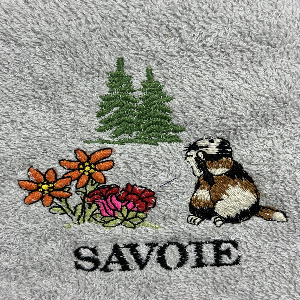 Essuie-main rond motifs Montagne - gris - Dessin marmotte