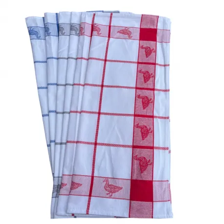 Lot de 6 torchons à carreaux motif canard rouge, bleu et gris 100% coton jacquard 50x70cm