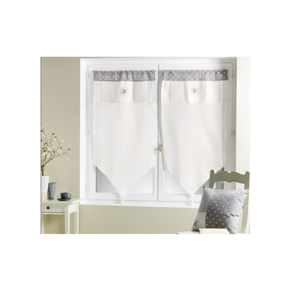 Voilage Brodé avec Initiales à Pois Gris - 60x120 cm