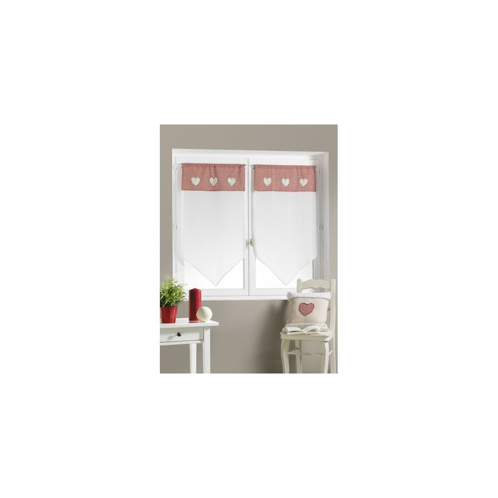 Vitrage avec parement vichy et appliques "coeur" en fausse fourrure.